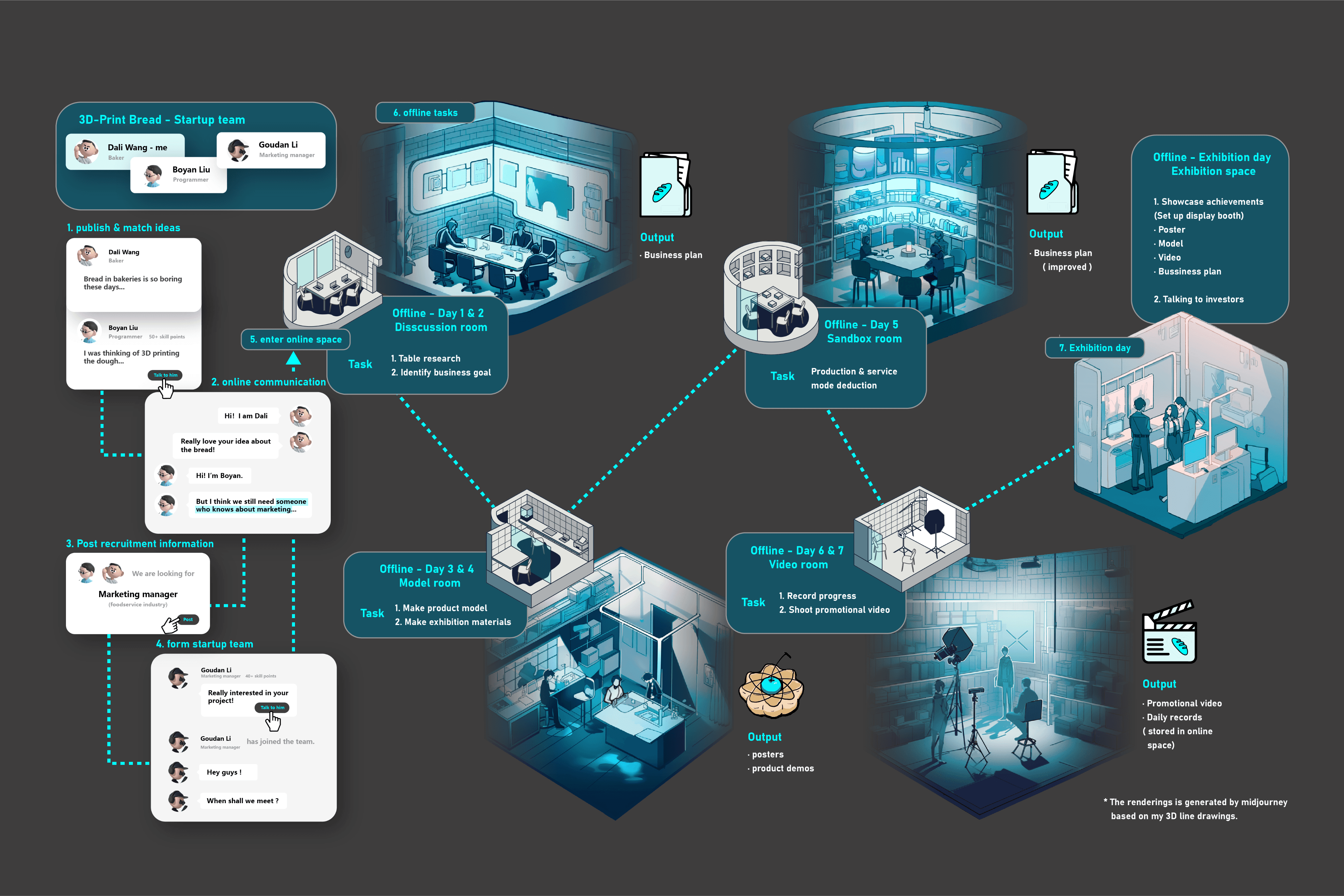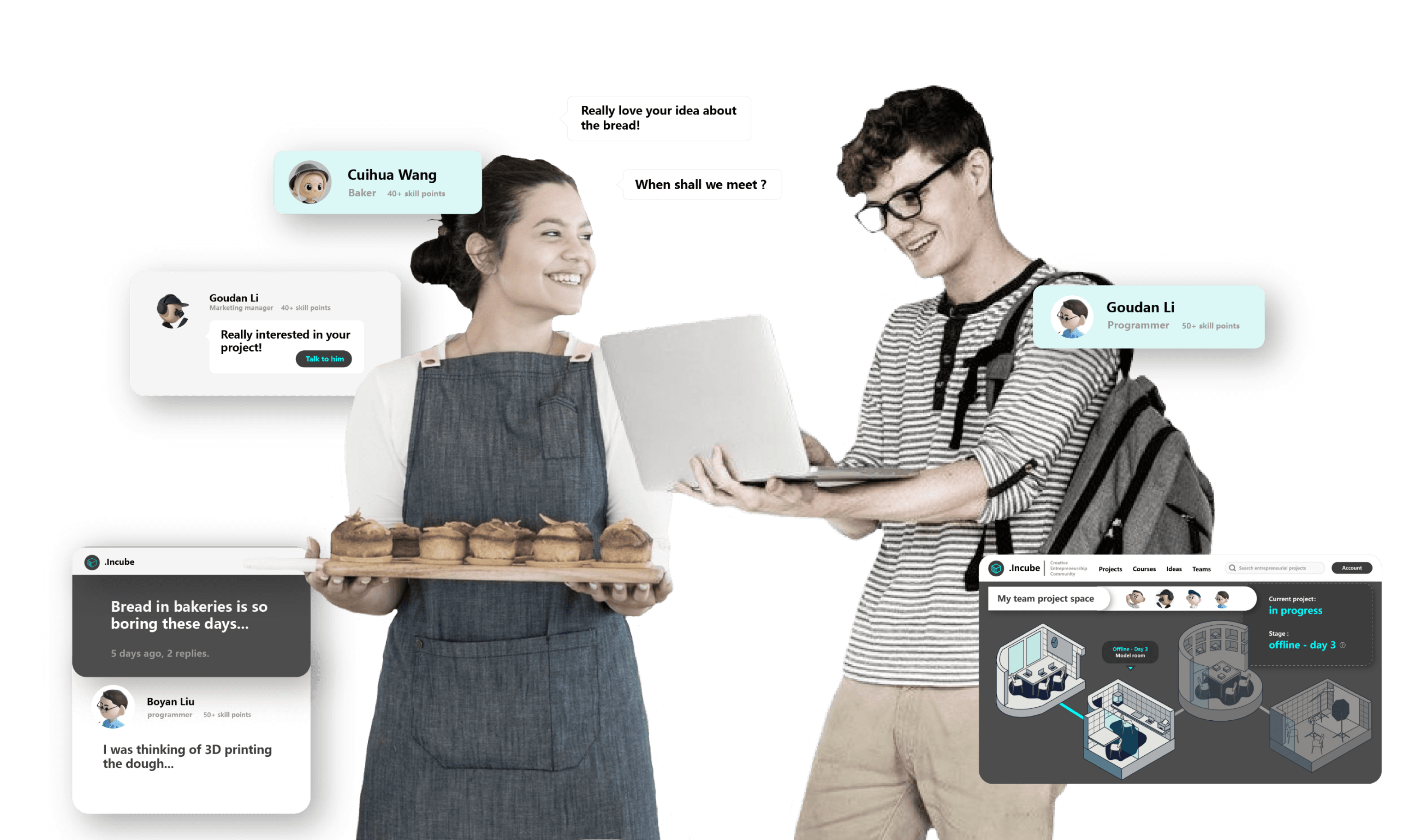 Incube is a set of youth innovation and entrepreneurship incubation service system designed with an online platform and an offline space, aiming to help young people to be able to build on their own professions and specialities, and to collide with professionals in other fields to create innovative sparks; at the same time, it lowers the threshold of entrepreneurship and the cost of trial and error, in order to better stimulate the innovation potential of the society as a whole.