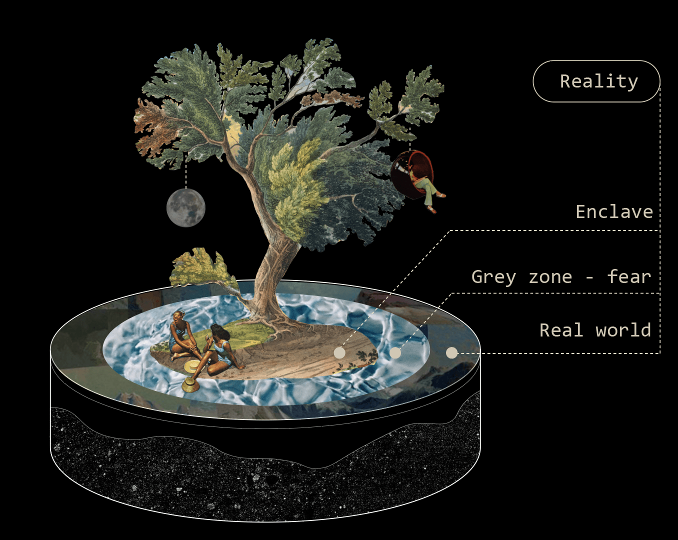 This moat is made of people's fear of reality —— without people's fears of reality, there would be no enclaves; also, these fears protect the enclaves from the real world.